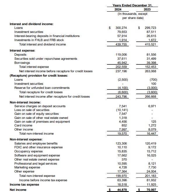 FMBL had substantially higher interest expenses for their bank deposits and borrowing as well as an increase in the company’s securities sold under repurchase agreements expenses during their FY 2024 as compared to 2023. This resulted in FMBL seeing a $25.1 million decrease in their net income in 2024, a 35% decrease from the previous year.