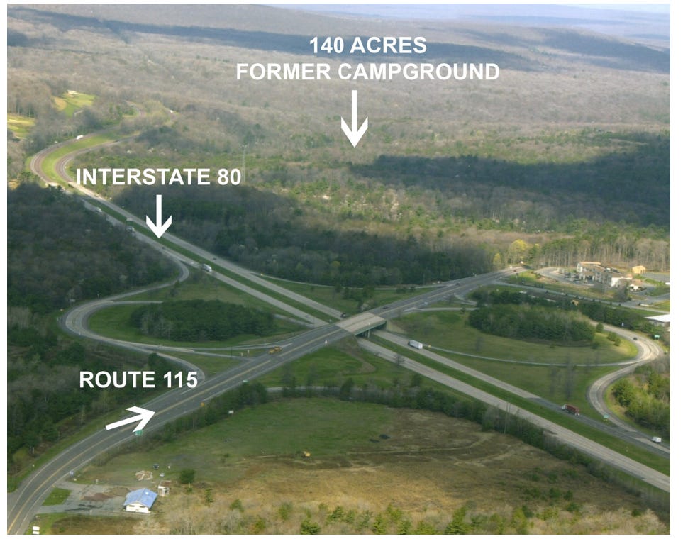 This acreage is 140 acres which includes 133 acres in Tobyhanna Township and 7 acres in Kidder Township. The property is conveniently located off of PA Route 115 just south of Blakeslee, Pennsylvania at the northwest quadrant with intersection of Interstate 80 at exit 284. This property is 2 hours from New York City and 1.5 hours from Philadelphia, Pennsylvania. Located in a pristine woodland setting, this parcel has frontage on Tobyhanna Creek and Tunkhannock Creek, both exceptional for trout fishing. Formerly operated as a campground from 1979 until October 2004. Some campground buildings remain on site. The tract of land has high-yielding water well and a possible connection to a central public sanitary sewer. The 133 acres are zoned commercial industrial and the seven remaining acres are zoned low density residential.