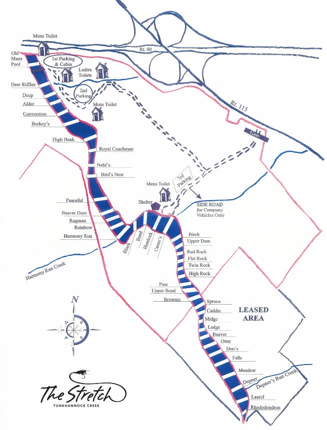 The Stretch is a private, members only fly fishing club located along the Tunkhannock Creek. The Stretch is owned and operated by Blue Ridge and consists of 450 acres of land that includes two miles of Tunkhannock Creek. Currently, membership to The Stretch is a 5-year wait. Annual fees are $2,050 and if you want to add your spouse it is an additional $1,350.