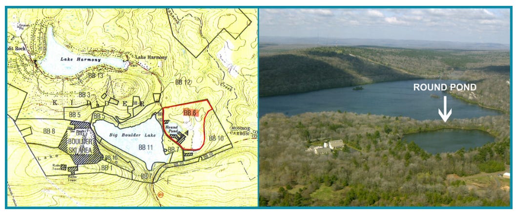 Round Pond is 154 acres located in Lake Harmony, Pennsylvania. This property is 4 miles from Exit 284 of I-80 and, once constructed, 6 miles from the proposed Route 903 exit of the Northeast Extension of the Pennsylvania Turnpike. This tract will have access off Lake Harmony Drive. This property is located 2 hours from New York City and 1.5 hours from Philadelphia, Pennsylvania. The parcel consists of 110 single family lots and surrounds a 10 acre pond. No infrastructure has been complete but central sewer is available. The property is also adjacent to Boulder View Tavern and Lake Mountain Club.