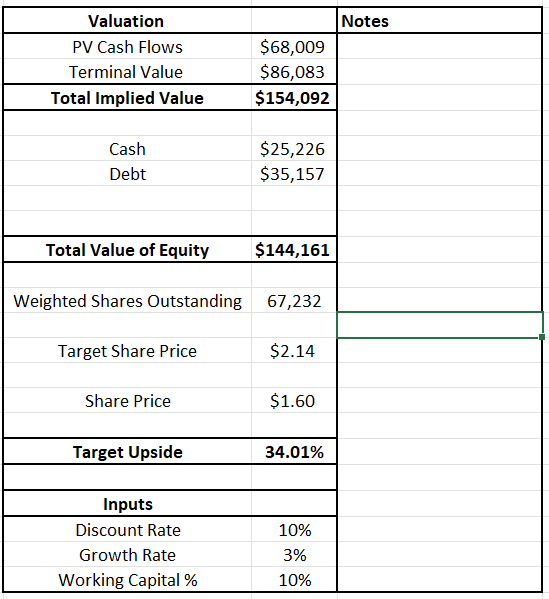 As you can see from the image above, my DCF ended up spitting out a $2.14 per share price target, a 34% upside from BUKS’s current share price of $1.60. I actually think that this price target is conservative as BUKS will be paying down a lot of their debt over the next couple of years. The company has also been very consistent on reducing their share count. Both of these events are catalysts for large increases in future cash flow potential.