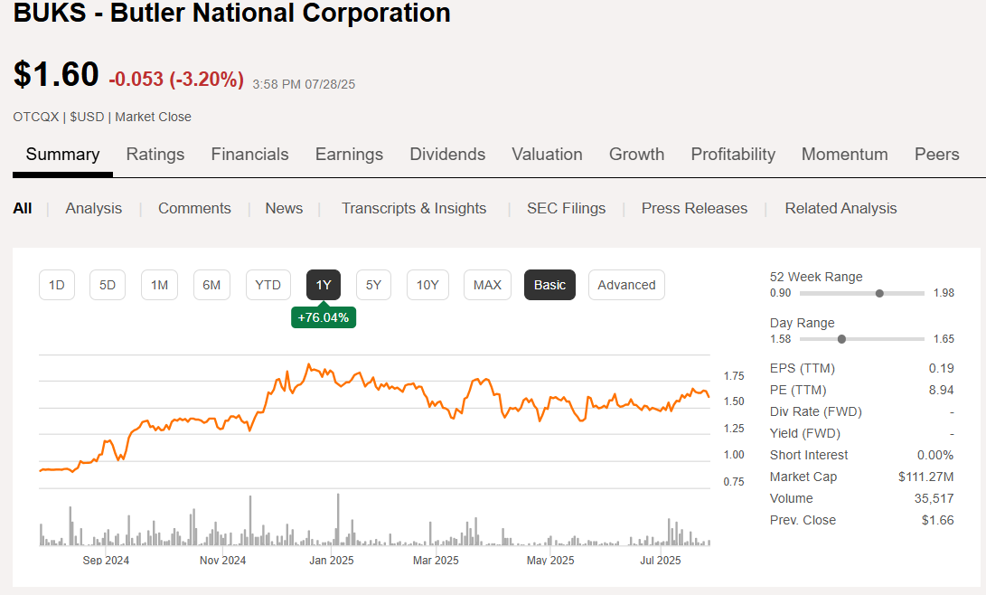 In a market crowded with overleveraged promises and speculative hype, The Butler National Corporation stands out as a rare example of quiet, calculated execution. With a rock-solid gaming asset providing stable cash flow and a rapidly expanding aerospace division poised to benefit from global tariff changes and operational leverage, BUKS is positioning itself for durable growth. The consistent share buybacks, ongoing debt reduction, and strategic capital expenditures reveal a disciplined management team focused on long-term value creation. While the company may not fit into a traditional mold, it’s the underlying fundamentals that make BUKS a compelling story for investors.
