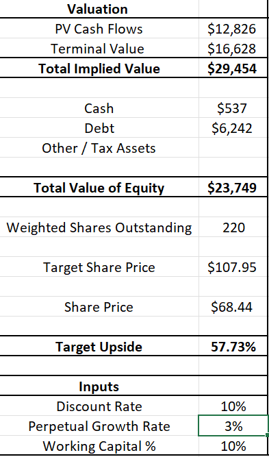 Dollar General (NYSE: DG 0.00%↑ ) is currently trading at its lowest share price in the past decade. DG’s share price had risen sharply to exuberant highs both during and post COVID. Once their margins began to slip however, Dollar General’s stock fell erratically, past what I would consider to be reasonable. If DG can bring their EBIT margins back up to 9.0% (where they were pre-COVID) and maintain their capital expenditures at a rate close to what they’re at now (3.6% of revenues), then I believe the company’s stock could be worth $108 per share.