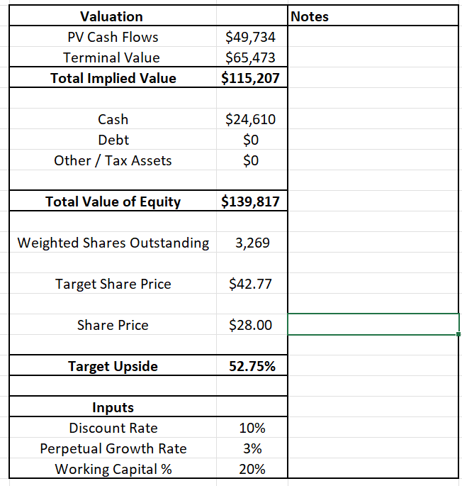 As you can see from the chart above I ended up with a 52.75% potential increase in NOBH’s cash flow potential as compared to the company’s current share price of $28.00.