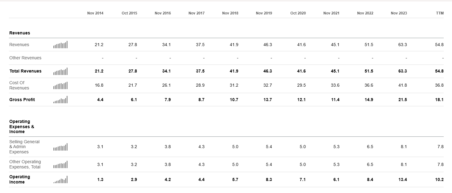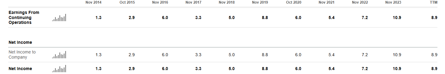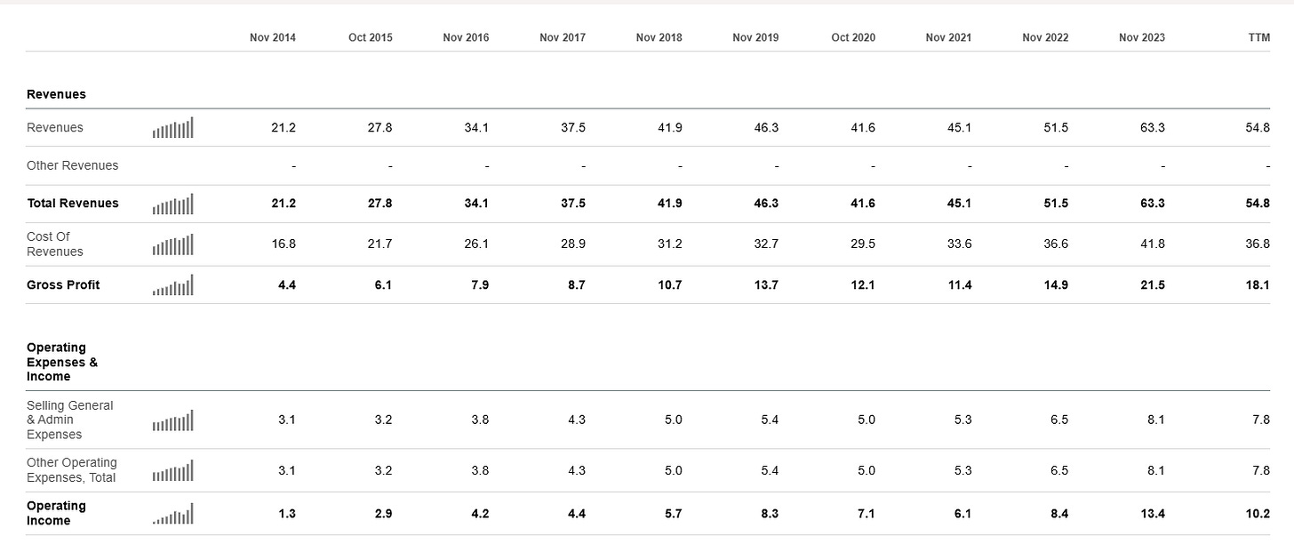 While NOBH has experienced a sales slump over the past year, the company has no debt. While NOBH’s revenues, operating income, and net income may vary from year to year, NOBH does have a history of growing these figures long-term.