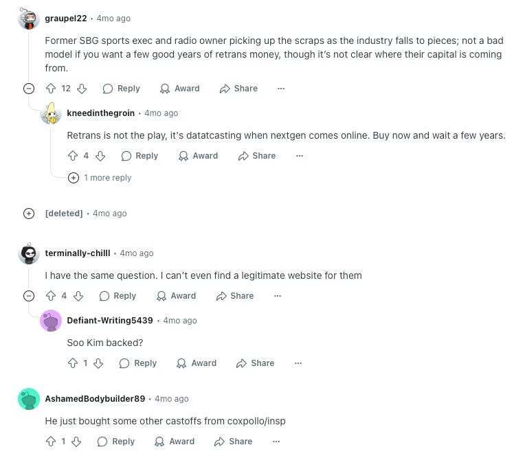 There is a weird link between Standard General, Sinclair and Rincon Broadcasting, which makes me speculate that Rincon could be backed by Standard General. I am not the only one who is speculating this as reddit user “Defiant-Writing5439” has made a similar comment here.