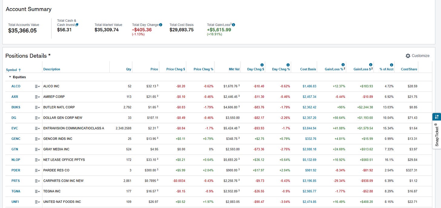 I wanted to take a break from doing paid articles to let my readers in on what stocks I own and why I own them. Every couple of months or so I do post screen shots of my brokerage account from Charles Schwab but I’ve never accompanied that with an in depth look at why I’m invested in each of these positions. Keep in mind, I could buy into a new position or sell off any of these positions at any time in the future but right now I’m feeling pretty good about these 12 stocks that I currently hold.