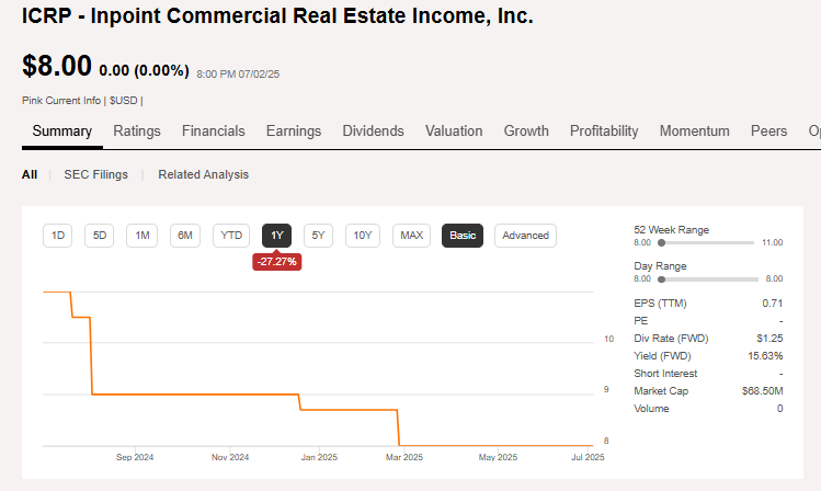 Disclosure: I do not currently own shares of Inpoint Commercial Real Estate Income, Inc. ($ICRP) but may buy a position anytime after this article is published. This is not investment advice. Do your own research.