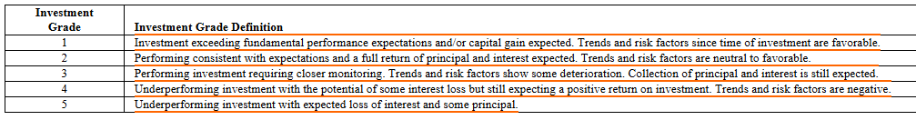 ICRP currently has 25 loans in it’s commercial real estate portfolio. 22 of these 25 loans are current on their contractual interest payments. ICRP has a numerical risk rating system to determine the likelihood that their outstanding commercial real estate loans will get paid off. The ratings range from one to five. With a one rating meaning that the loan exceeds fundamental performance expectations while a five rating means that the company expects to loss interest and some principle on the investment.