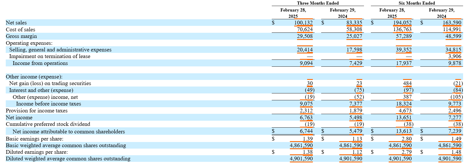 It’s looking like EACO’s growth model is continuing to work as these additional employees have helped raise the company’s YOY figures significantly. Their revenues are up 18.6%, their gross profit is up 17.9%, their income from operations is up 81.6%, and their net income is up 87.6%.