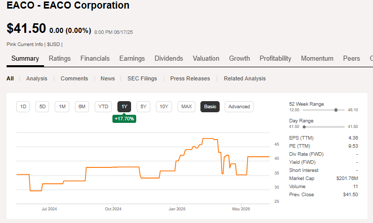 Disclosure: I do not currently own shares of The EACO Corporation ($EACO) but may buy a position anytime after this article is published. This is not investment advice. Do your own research.